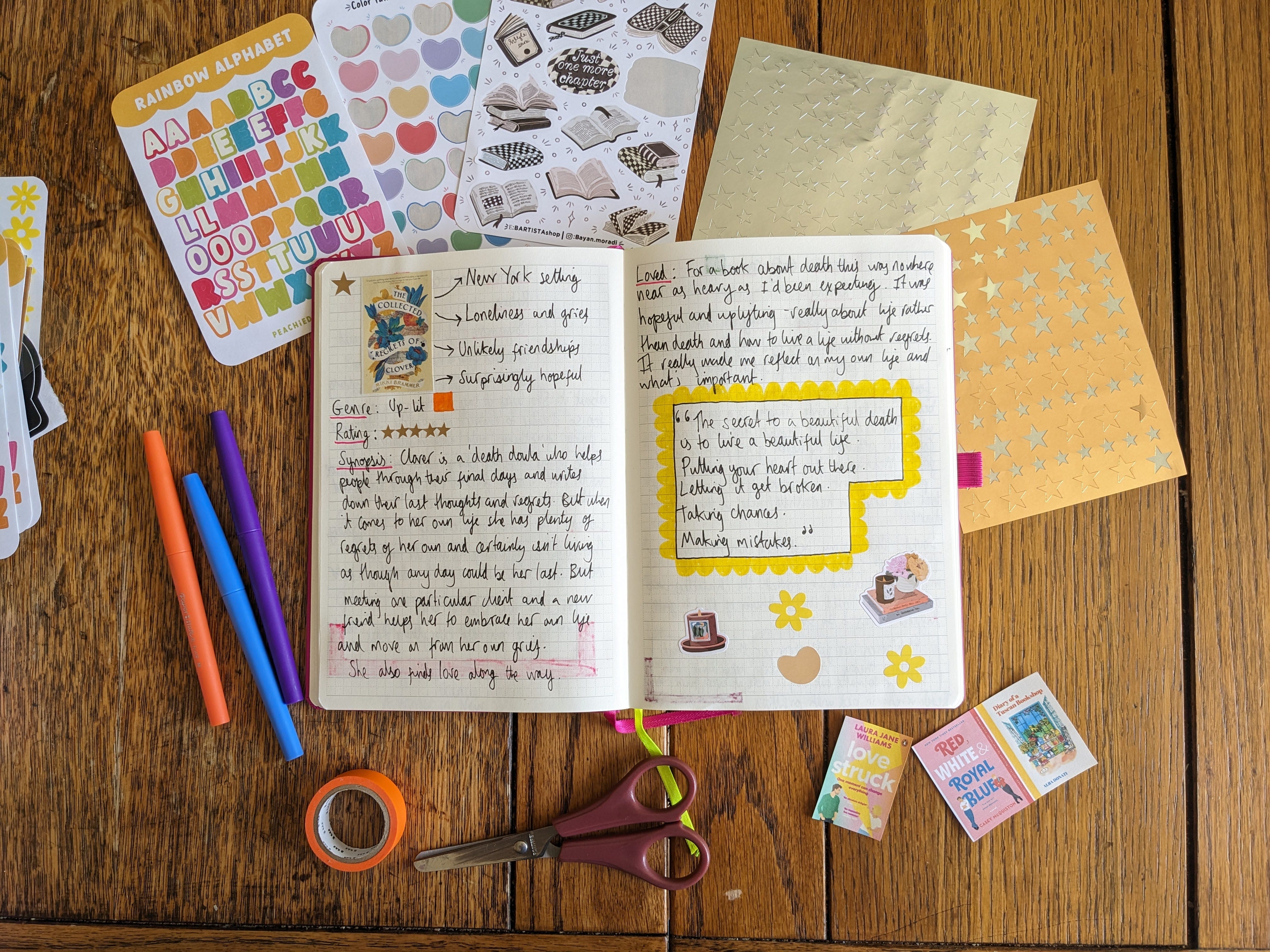I then typically allow a page or two per book, listing the genre, a synopsis, things I loved, a star rating and maybe a favourite quote.